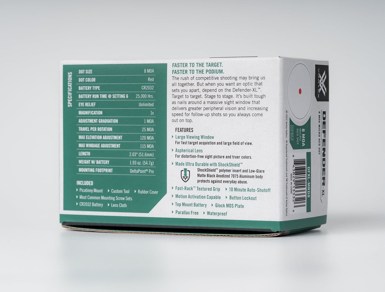 Az extra széles irányzékablak köré épített Defender-XL egy masszív, versenyre kész mikro vöröspontos irányzék, amely kiválóan használható szolgálati vagy lőtéren használt pisztolyokon – és karabélyokon/sörétes puskákon is, ha a mellékelt Picatinny sínnel van felszerelve.